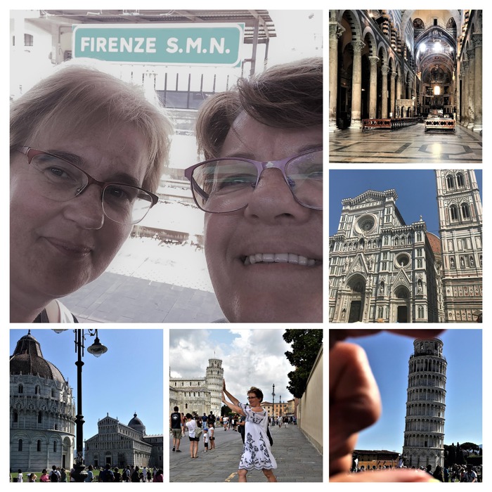 Otthon erre is felkészültünk, busszal utazunk! De egy nagyon kedves, segítőkész taxisofőr elmondta nekünk, hogy legjobb a vonat, legolcsóbb és leggyorsabb! Valószínűleg ezt sok mindenkinek mondhatta el, mert iszonyat sokan voltunk a kétszintes vonaton, ahol nem volt légkondi és kinyitható ablak sem! De kemények voltunk és megérkeztünk Firenzébe!